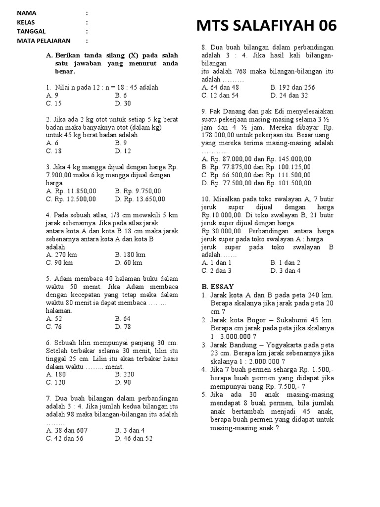 DOC Contoh soal dan pembahasan jawaban Perbandingan dan Sumber : www.academia.edu